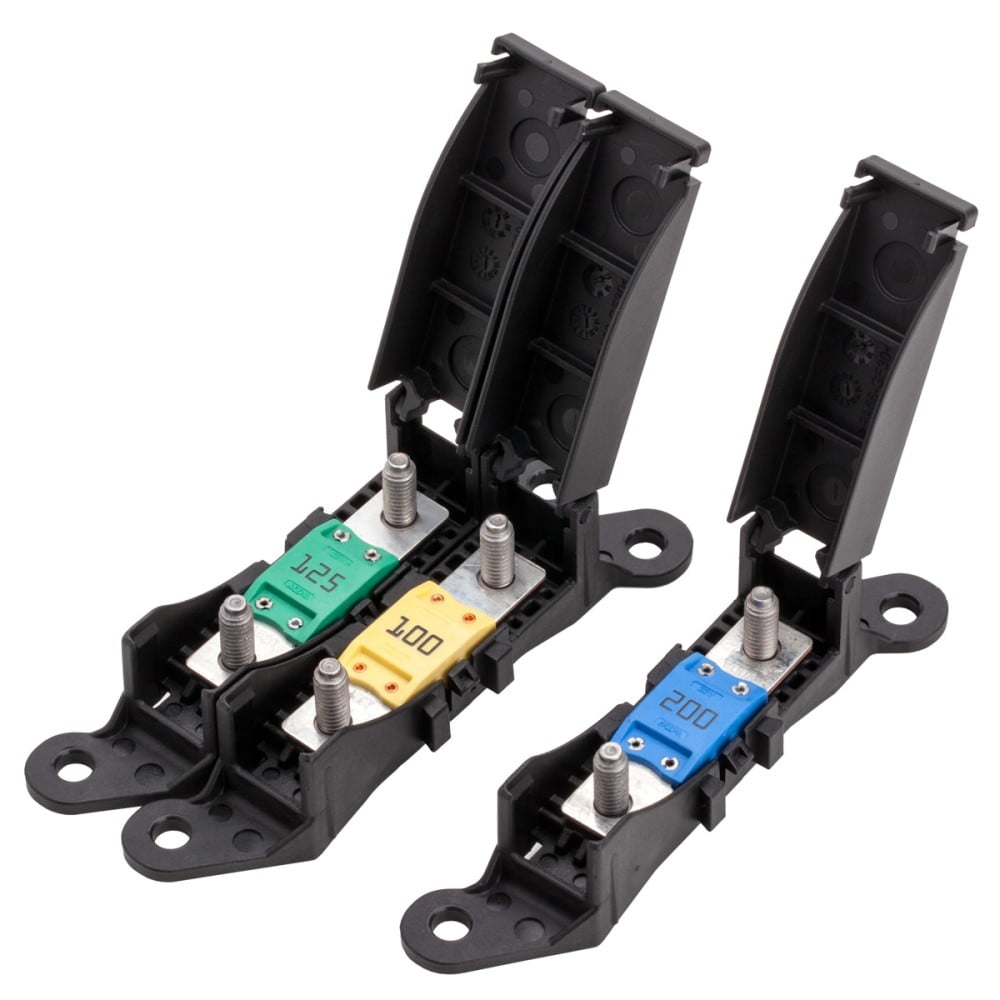fuse holder specifically designed for MTA's Mega line of bolt-down fuses will also work with other bolt-down fuses with mounting holes 50.8MM between centers.