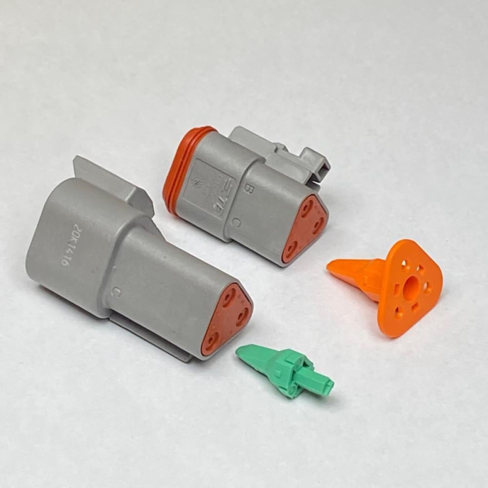 DEUTSCH DT connectors offer field proven reliability and rugged quality. The DT design strengths include optional flange mounting, multi-pin arrangements, and design flexibility. Thermoplastic housings offer a wide operating temperature range and silicone rear wire and interface seals allow the connectors to withstand conditions of extreme temperature and moisture.